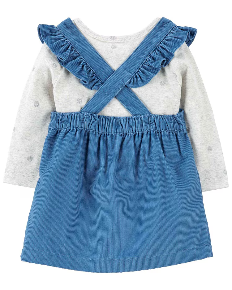 A Salopete bebê 2 peças poá metalizado com meia-calça aveludada multicor | Carter's é a combinação perfeita para sua baby. O conjunto é composto por três peças super delicadas, sendo uma camiseta de manga longa estampada, uma par de meias e uma linda salopete com botões frontais e babados. O look perfeito para um passeio. Invista!
