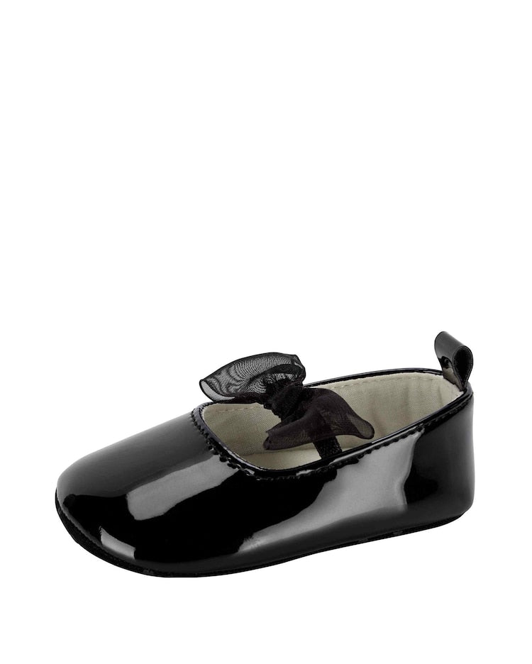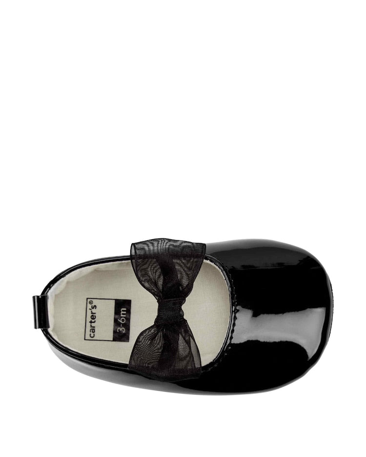 Deixe a sua baby mais fofinha e com os seus pezinhos protegidos com o Sapato bebê com laço preta | Carter's. Feito de poliuretano e poliéster, o calçado possui laço na parte superior, perfeita para acompanhar essa fase fofinha de seu bem mais precioso. Aproveite!